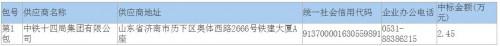 本項目中標供應商為:中鐵十四局集團有限公司、中鐵建發(fā)展集團有限公司、中節(jié)能國禎環(huán)保科技股份有限公司聯(lián)合體;中標金額的單位為元/立方米,本項目中標金額為污水處理服務費綜合單價2.45元/立方米。